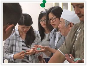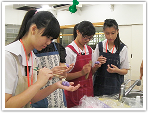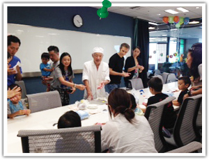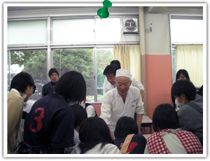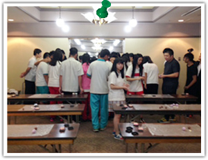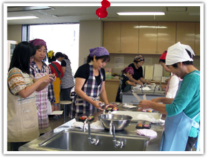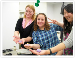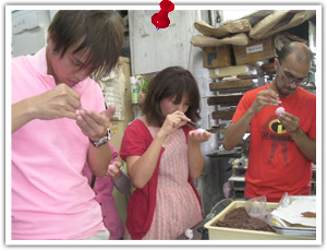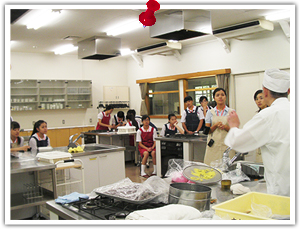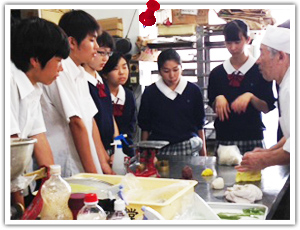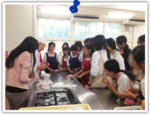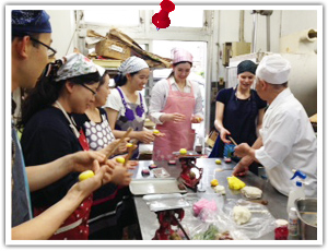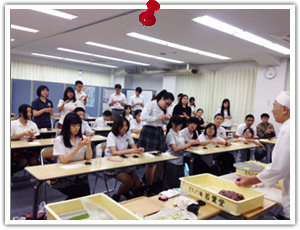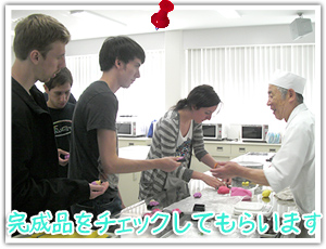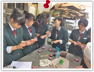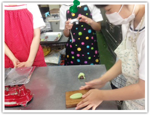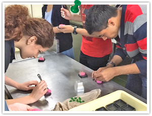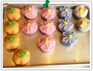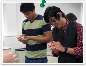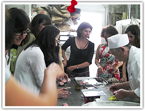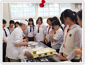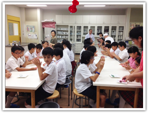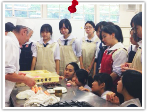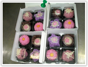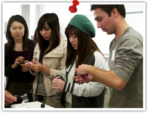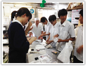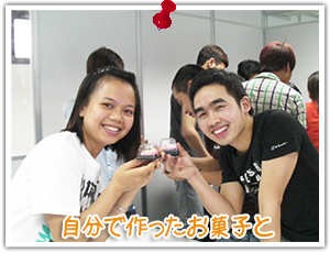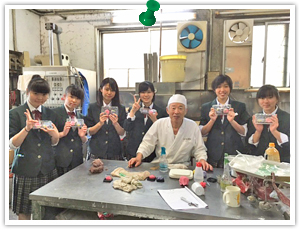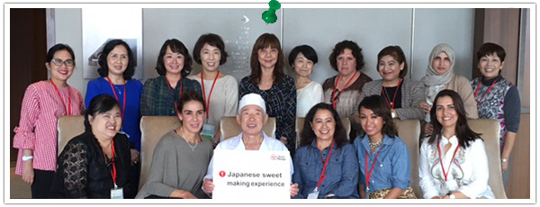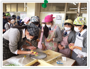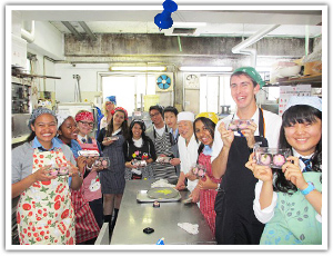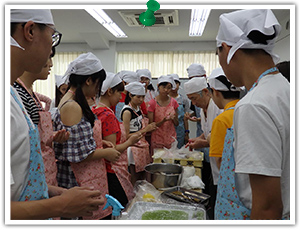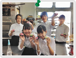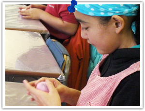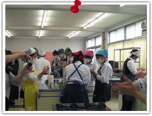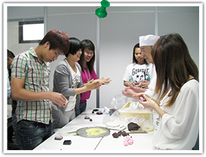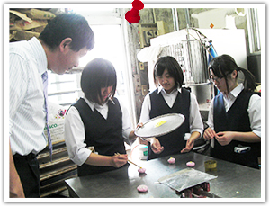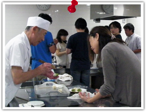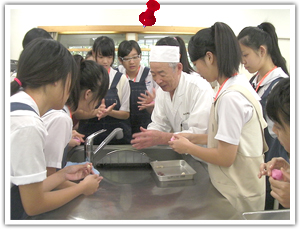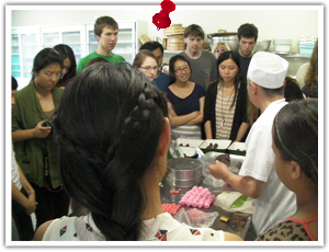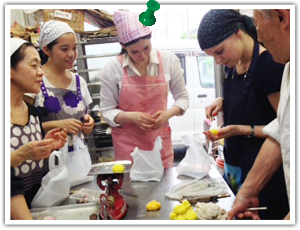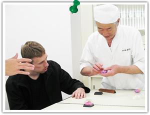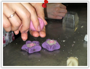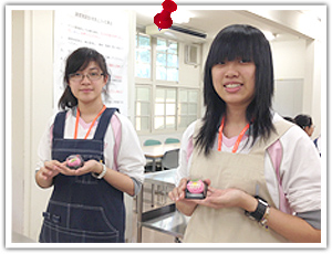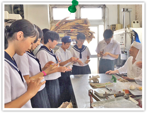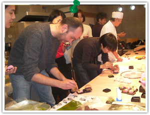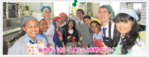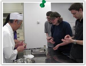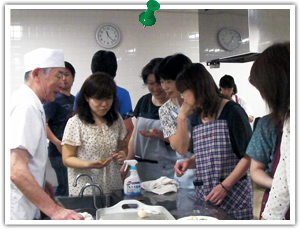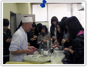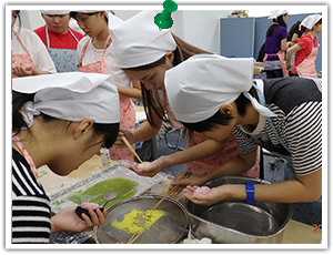 2009年10月10日 若葉堂店内にて桜美林大学留学生が、 和菓子づくり体験を行いました。 1日の主な流れは、 ・店内の珍しい和菓子や置物の写真撮影 ・あんこを煮ている所や饅頭作りを見学 ・秋をテーマに1人3つの上生菓子作り ・和菓子の本を見て日本の文化を説明 その後、町田フォーラムにて留学生が作った上生菓子でお茶会を行いました。 『1日、日本の文化に触れられて、とても楽しかった。』 『中でも、和菓子作りが一番印象に残り、 いい経験ができました。』と喜びの電話を後日頂きました。