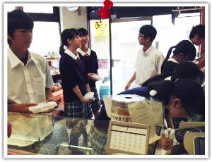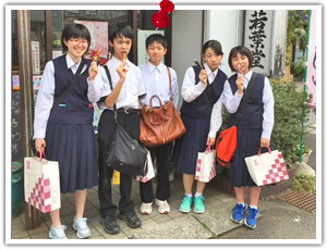 愛知県からの修学旅行生が和菓子作り体験にきてくれました。 町田の銘菓「薬師池」をお土産に買っていただいたり、「す甘」を知らなかったようでお店で食べたりしていました。