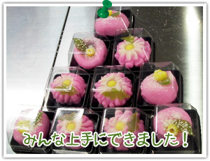 ▼出張も承ります。 ・本店にて開催の場合は15名までですが、 場所 調理室が借りられる場合は人数は30名ぐらいまで行えます。(30名以上もご相談ください) 和菓子作りをする方のみ、工場にお入り下さい。 自身で作られたお菓子、また体験風景の写真撮影は構いません。